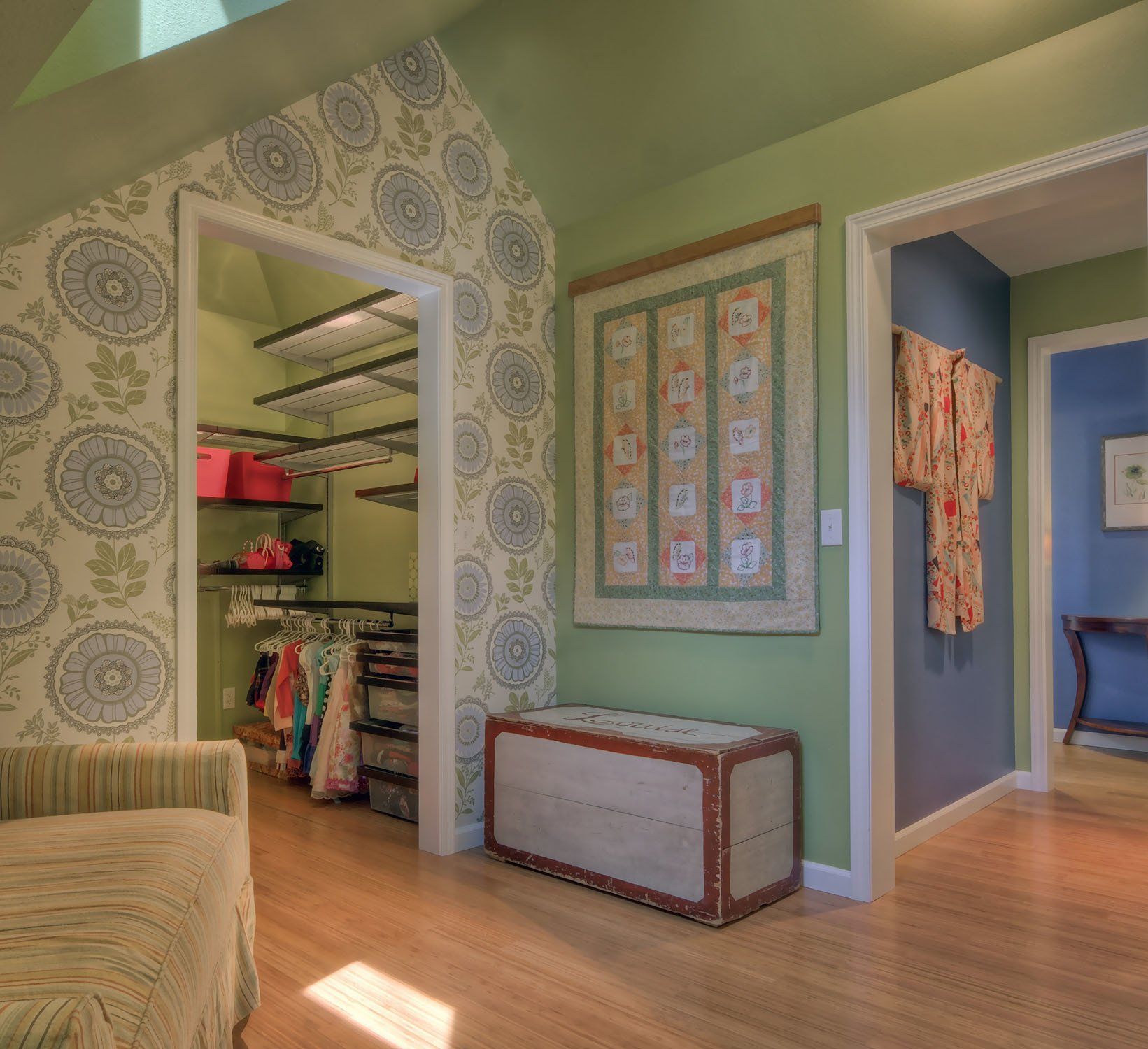 The space is contemporary, colorful and earth friendly – exactly what my clients wanted. My little clients were thrilled to have input on colors and fabrics. The girls love their space now and the design allows for plenty of flexibility as they grow.